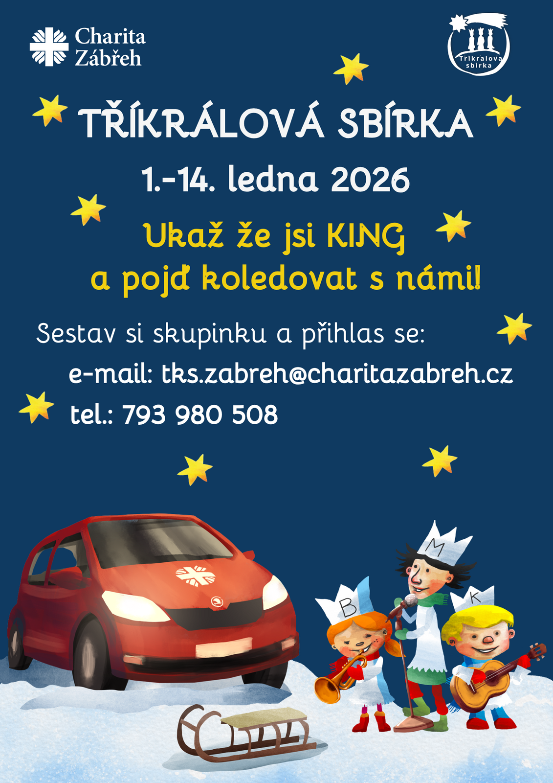 Kolednické potřeby (kasička, průkazka, taška s kolednickými potřebami) budeme vedoucím skupinek vydávat ve ČT 18.12. a PÁ 19.12. od 13:00 do 15:00 hodin v charitním domě sv. Barbory (Žižkova 7/15, Zábřeh). Dle směrovek poznáte kudy tudy.